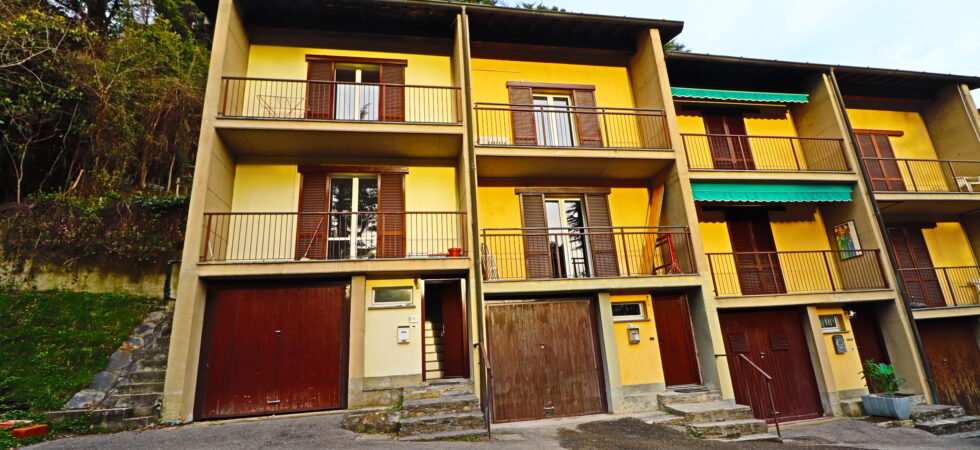 Tremezzina: TREMEZZO – a 100 metri dal lago in contesto residenziale, servitissima villetta a schiera di testa libera su 3 lati, disposta su due piani di: al piano terra ingresso indipendente, box e ripostiglio, al piano primo soggiorno con terrazzo, cucina abitabile, servizio giorno, porticato veranda e comodo accesso al giardino privato; al secondo piano due camere da letto, bagno e loggiato con vista lago. Ampio solaio accessibile. Ottima prima casa.